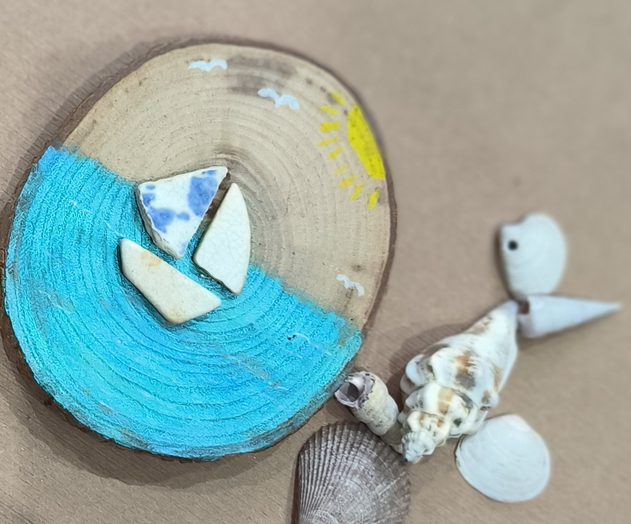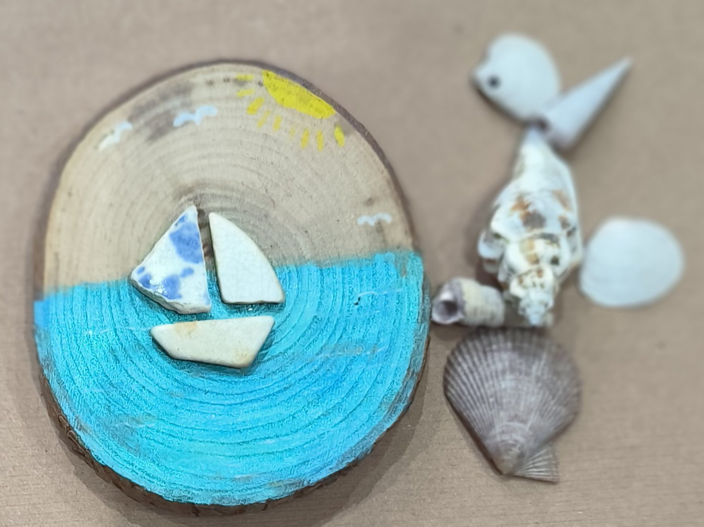 Beautiful sea pottery boat in the ocean