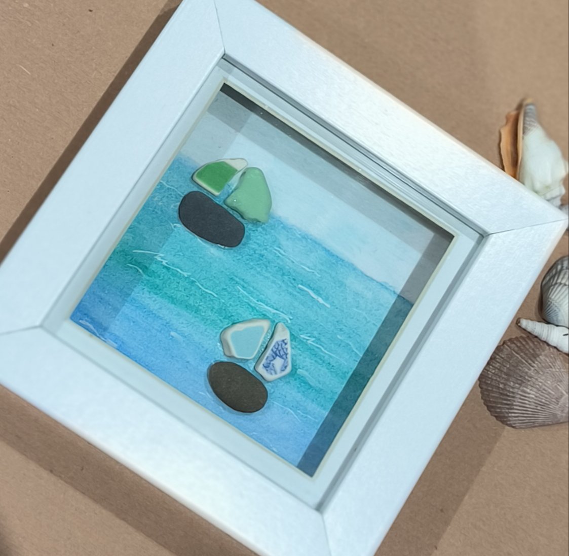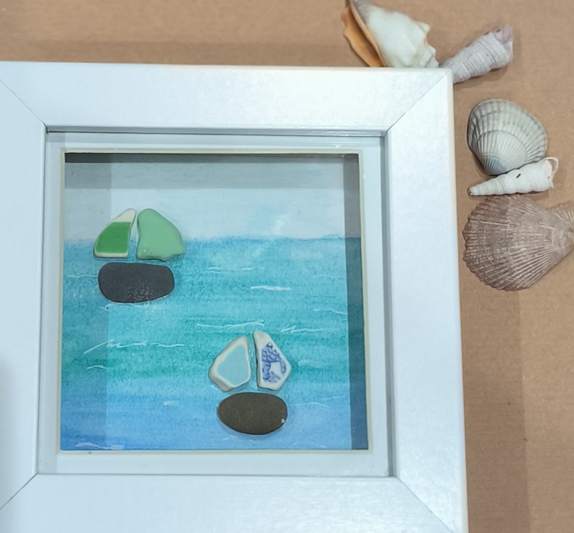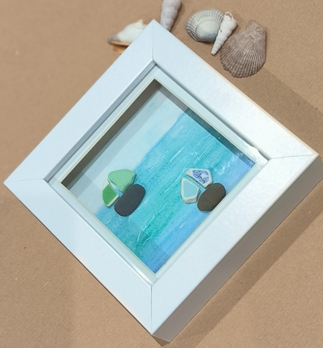 Sea glass, sea pottery and milky sea glass make this a lovely beachy feel.