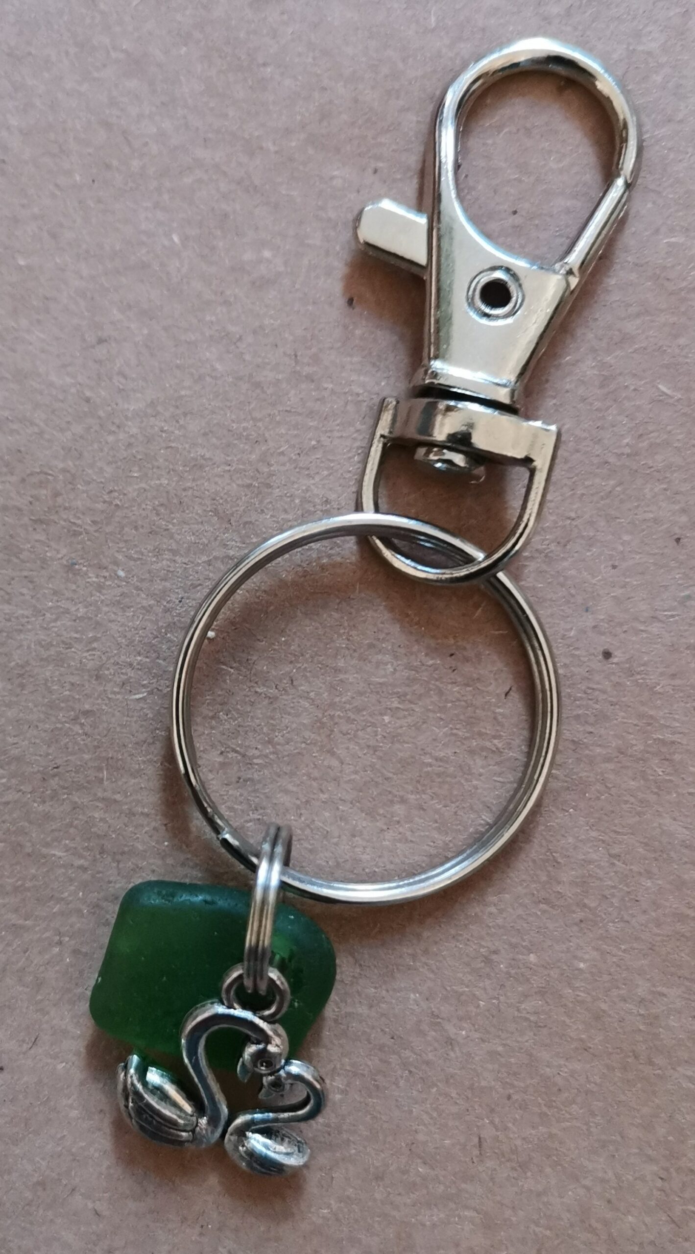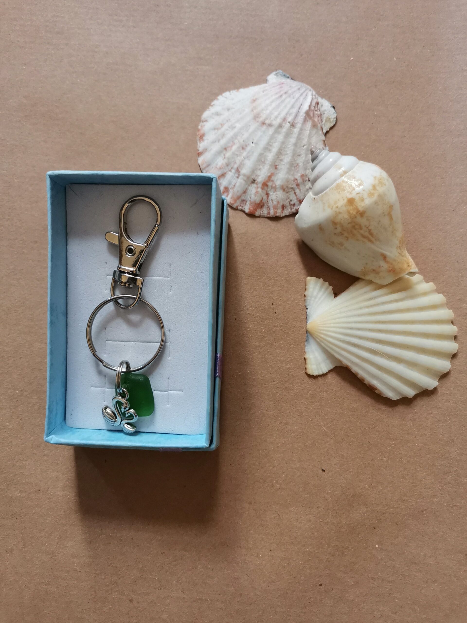Sea glass collected by ourselves, also a charm added to make a keyring