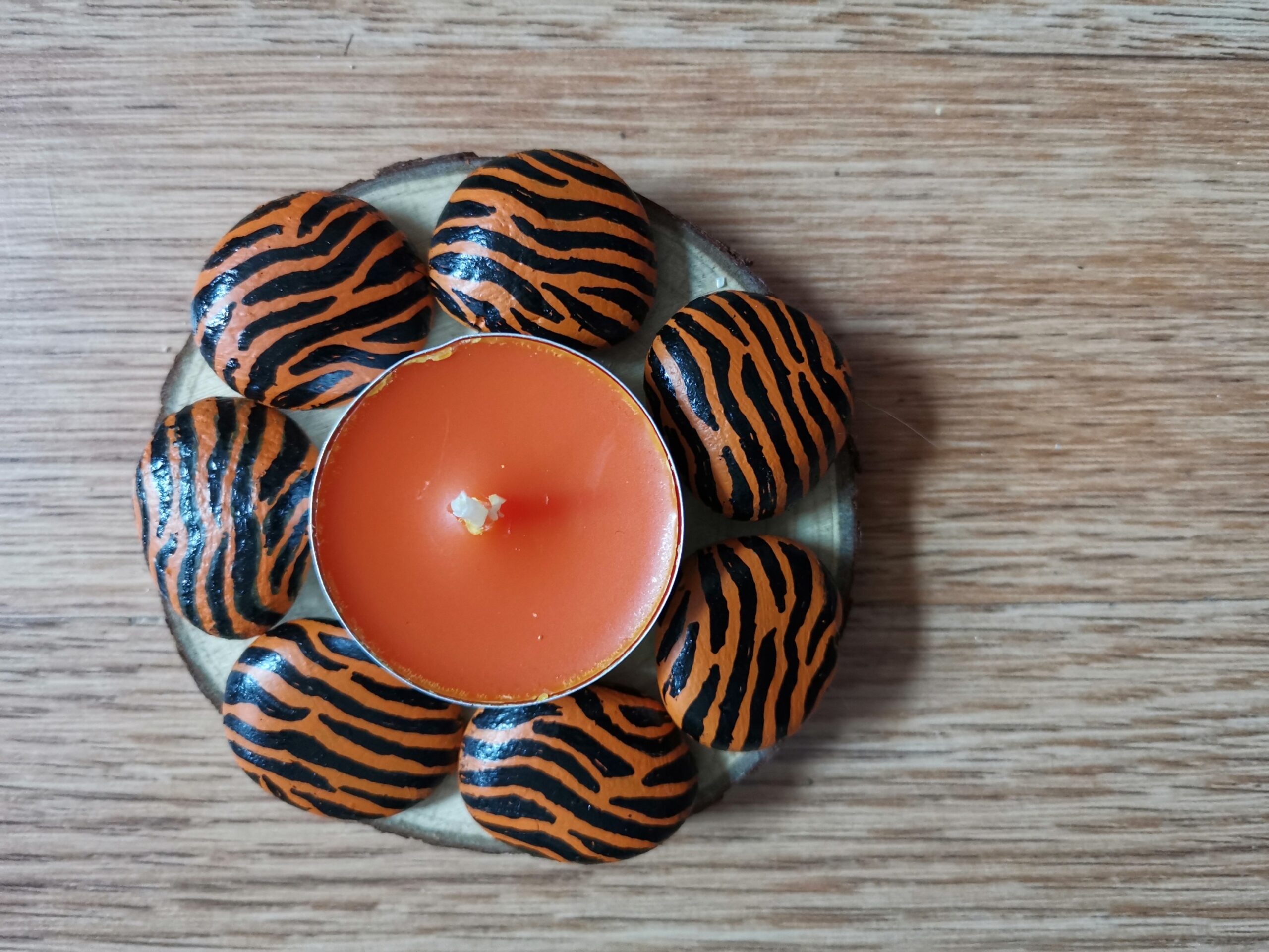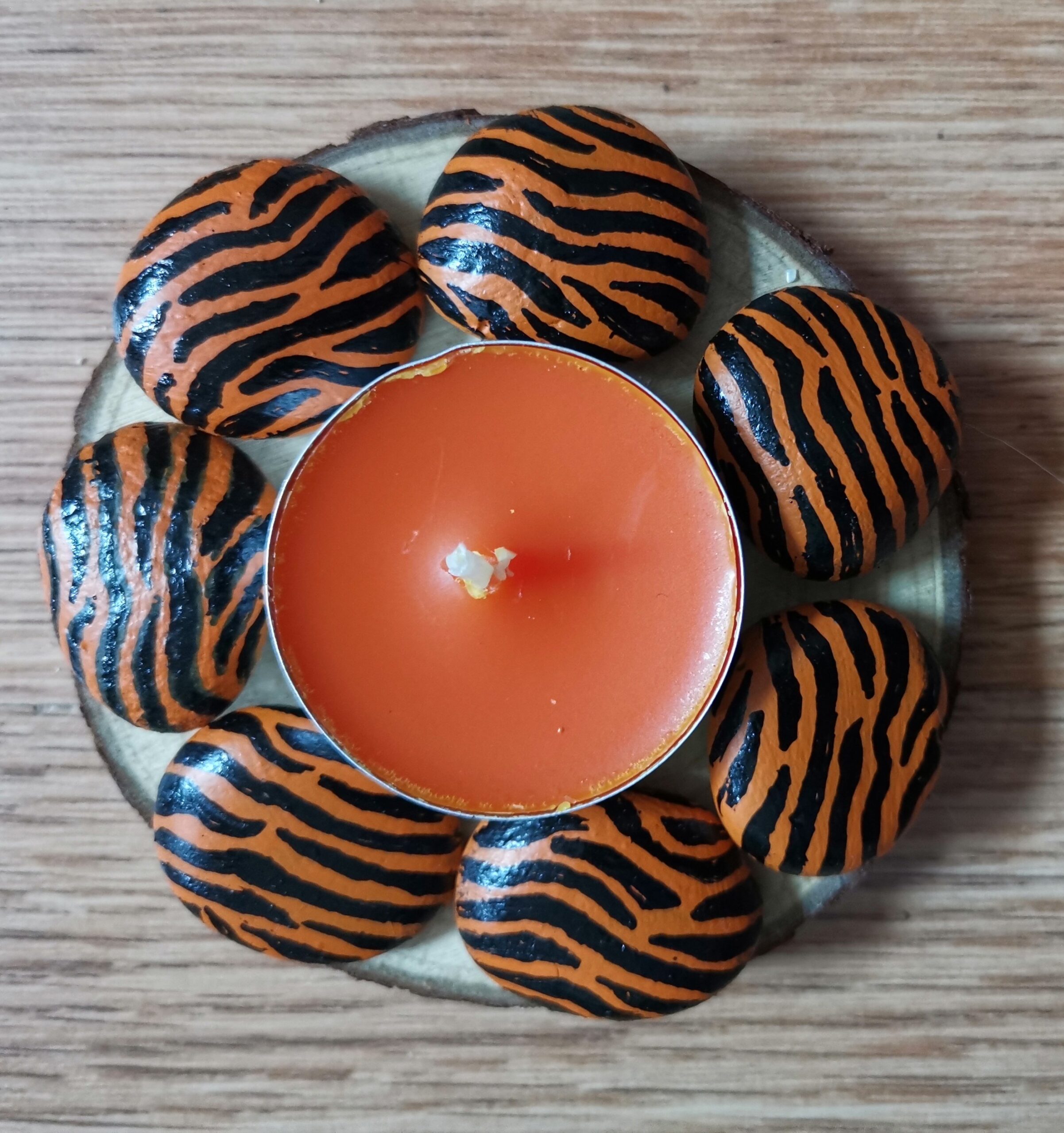 These are 7-8 cms with a wood logs slice as the base which also has felt underneath for no scratching
